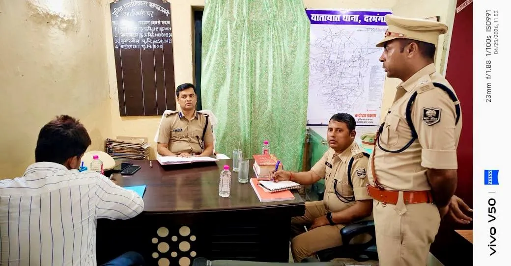 दरभंगा | 25 अप्रैल 2026: बिहार के दरभंगा जिले में यातायात व्यवस्था को और अधिक सुदृढ़ बनाने के लिए पुलिस प्रशासन ने बहुत बड़ी और कड़ी पहल की है। खबर आंगन की सिटी डेस्क के अनुसार वरीय पुलिस अधीक्षक ने 25 अप्रैल 2026 को यातायात थाने का बहुत ही सघन निरीक्षण किया। इस अहम निरीक्षण से ठीक पूर्व उन्हें शानदार गार्ड ऑफ ऑनर दिया गया।