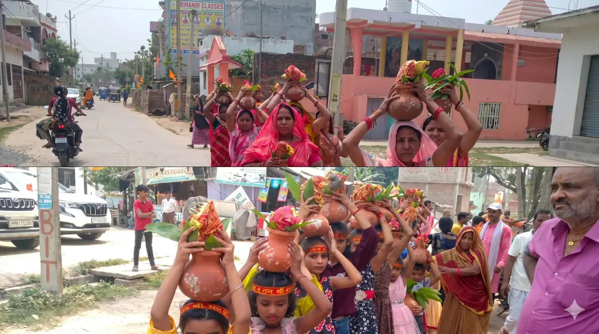 केसरिया वस्त्रों में सजी कन्याओं ने निकाली भव्य कलश शोभा यात्रा
